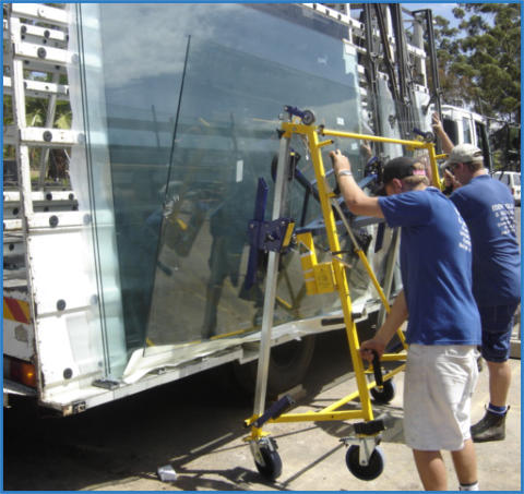 •Eliminates OHS issues such as strains and sprains resulting from manual handling of glass.•Reduces man power required for transportation and installation of heavy glass by up to 50 percent.•Prevents breakages and damage to glass in transport and installation.•Protects the workers whilst carrying glass.•Rotate long plates of glass.The Quattrolifts Nomad is designed to assist glaziers to unload, transport and install glass safely. It has a lifting capacity of 400 Kg's (880 Lbs). It can rotate glass measuring upto 4400 mm (180"). It has adjustments to allow for side and top pocket glazing. The Nomad is the world's first patented labour saving, cost effective device which offers a safer option to the manual handling of glass, slate and board on site.The Nomad was designed and developed by an Australian Chiropractor and Occupational Health and Safety Consultant, that assists glaziers with the installation, transportation and rotation of glass weighing up to 400 kg (880 lb).The Nomad has received the following awards: 2005 2nd Place - Best Solution For Sprain and Strain Injuries, WorkSafe Vic Australia Award; 2005 Finalist Engineers Australia Award; 2004 Invention Of The Year Award. The Nomad complies with all relevant European directives.